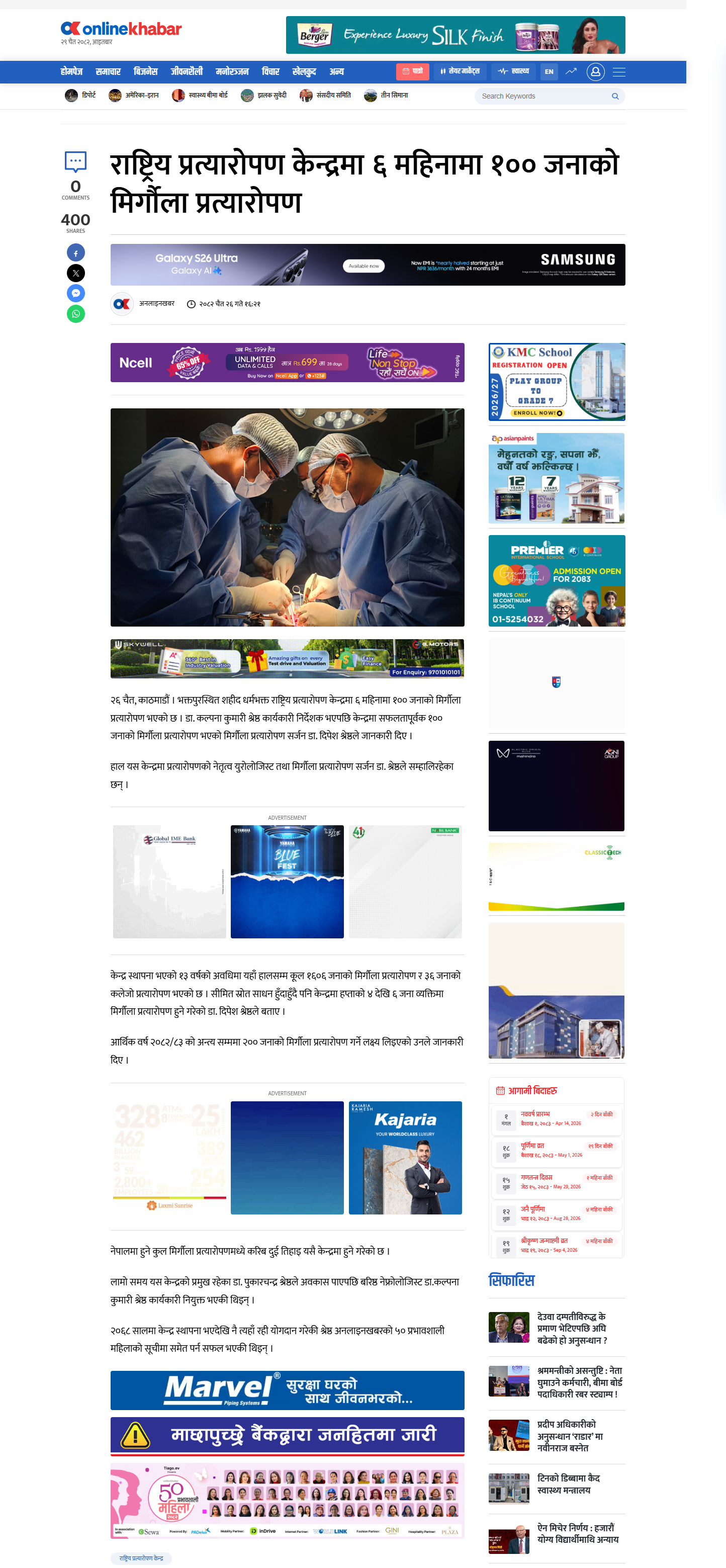 नेपालमा पहिलो पटक मस्तिष्क मृत व्यक्तिबाट प्राप्त मृगौला र कलेजोे एकै व्यक्तिमा सफलतापूर्वक प्रत्यारोपण !! |