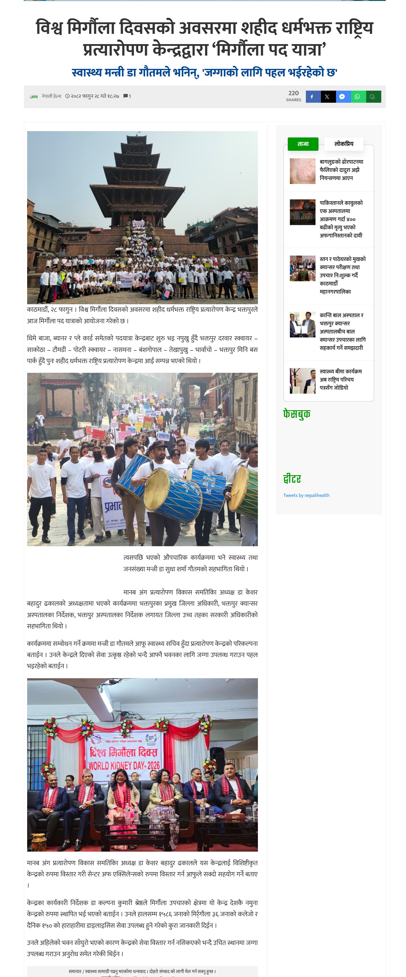 विश्व मिर्गौला दिवसको अवसरमा शहीद धर्मभक्त राष्ट्रिय प्रत्यारोपण केन्द्रद्वारा ‘मिर्गौला पद यात्रा’ |