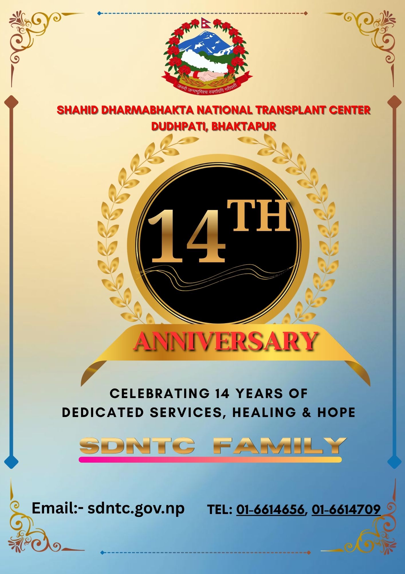 आज यस केन्द्रको १४औँ वार्षिकोत्सवको विशेष दिनको अवसरमा केन्द्रलाई यहाँसम्म ल्याउन अथक मेहनत, समर्पण र सेवाभाव देखाउनु हुने सम्पूर्ण कर्मचारी परिवारप्रति हार्दिक धन्यवाद व्यक्त गर्दछौं। तपाईंहरूको प्रयासकै कारण आज हामी यो महत्वपूर्ण उपलब्धिमा पुग्न सफल भएका छौं।